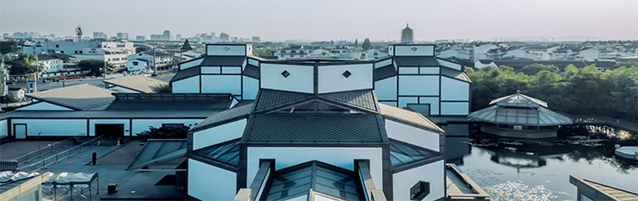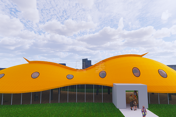 此為眉山展覽館項目,此屋面系統采用的是新型建筑材料金屬...
